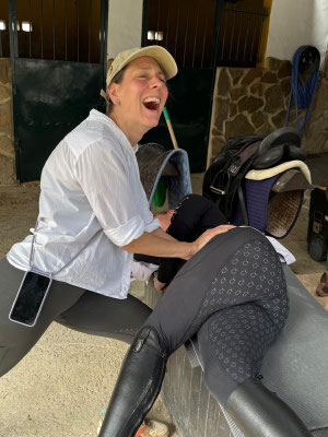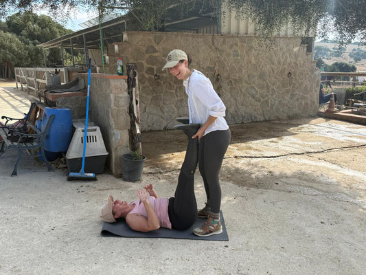 Abgestimmt auf die Bedürfnisse der Reiterinnen wurde der Tag mit Yoga gestartet oder beendet. Während der Reiteinheiten wurden individuelle Übungen aus der Neuroathletik eingebaut, Atemübungen,